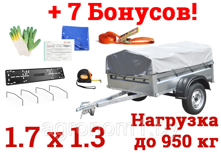 Прочные рессоры позволяют преодолевать любые ухабы на дороге без ущерба для груза. В комплект прицепа входит непромокаемый тент из ПВХ высотой 30 см от борта. Прицеп оборудован стандартным набором световых приборов, это комбинированные фонари, поворотники, стоп-сигнал, светоотражающий треугольник. Светотехника польской фирмы Fristom. На полу влагостойкая фанера толщиной 6 мм, ламинированная и многослойная, покрытие противоскользящее.