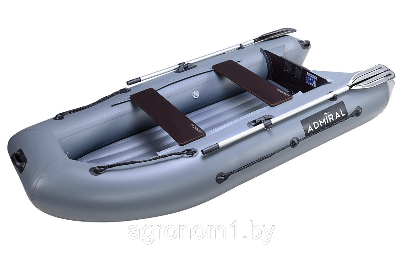 Надувная ПВХ лодка Адмирал 290 НДНД имеет надувное дно и жестко вклеенный транец и отличается: